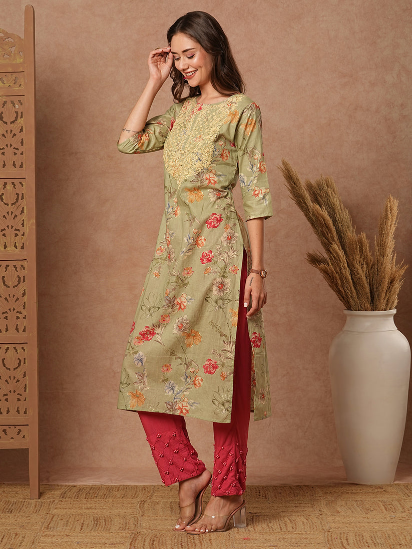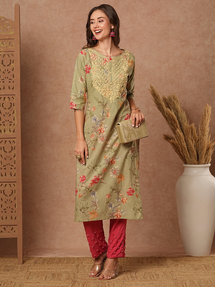 Green Floral Sequins Kurta